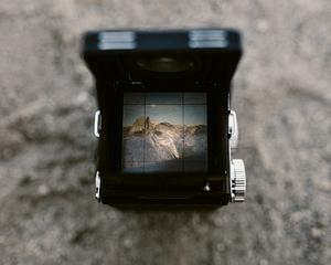 Another take on Half Dome from Glacier Point through a viewfinder of a medium format camera.